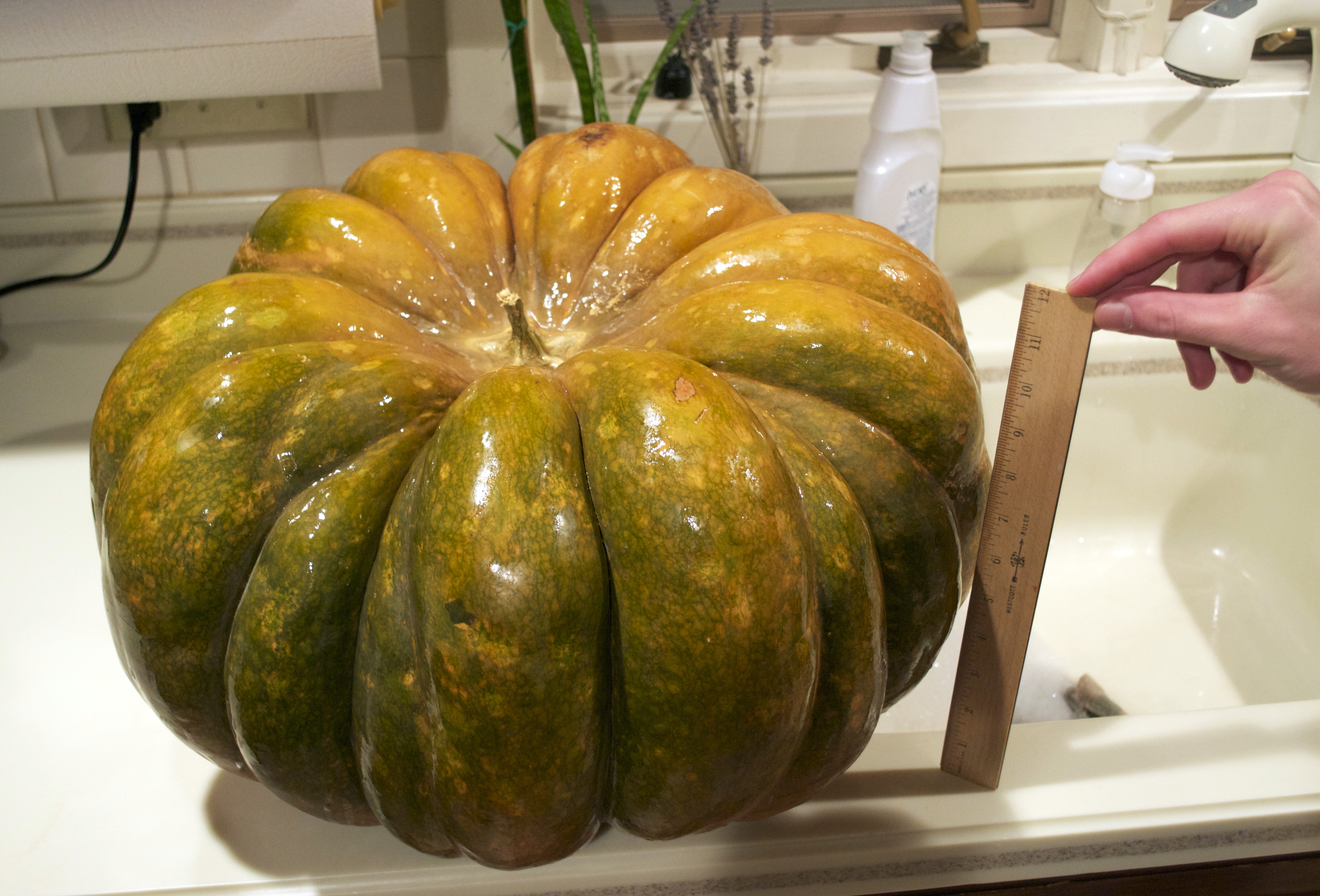 One of the first things Stephen’s father had to point out to me when I arrived in Kutztown… a very very large pumpkin they had sitting on their front stoop. Apparently it’s called a Cinderella Pumpkin. On the outside, it was a lovely green with pale orange (my pictures don’t do it justice). I believe it weighed somewhere around 60 pounds… and would therefore produce enough pumpkin for everyone in Kutztown to have some pumpkin pie for Thanksgiving.