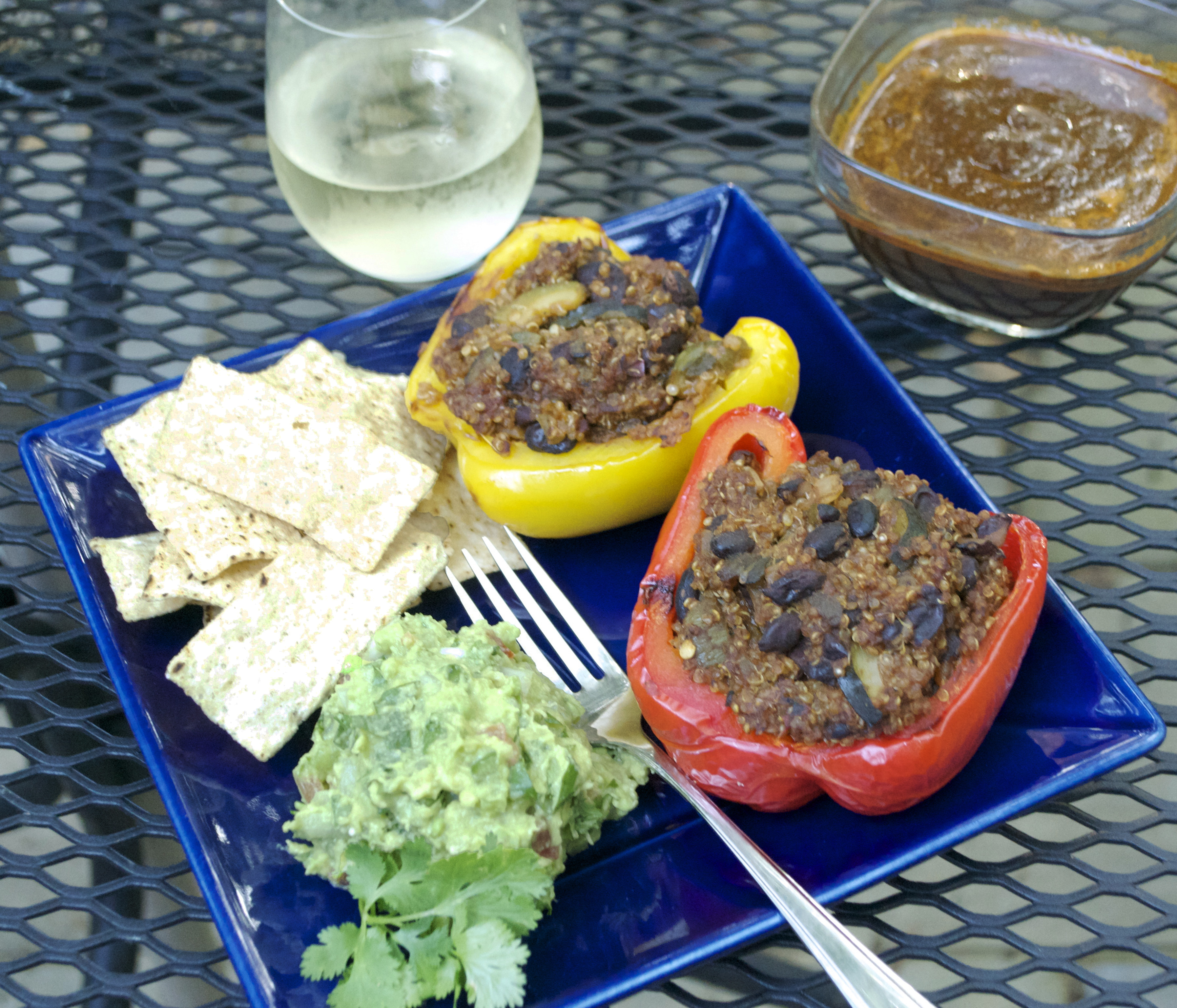 Fill peppers to the brim with prepared mixture and return to oven for about 15 minutes.