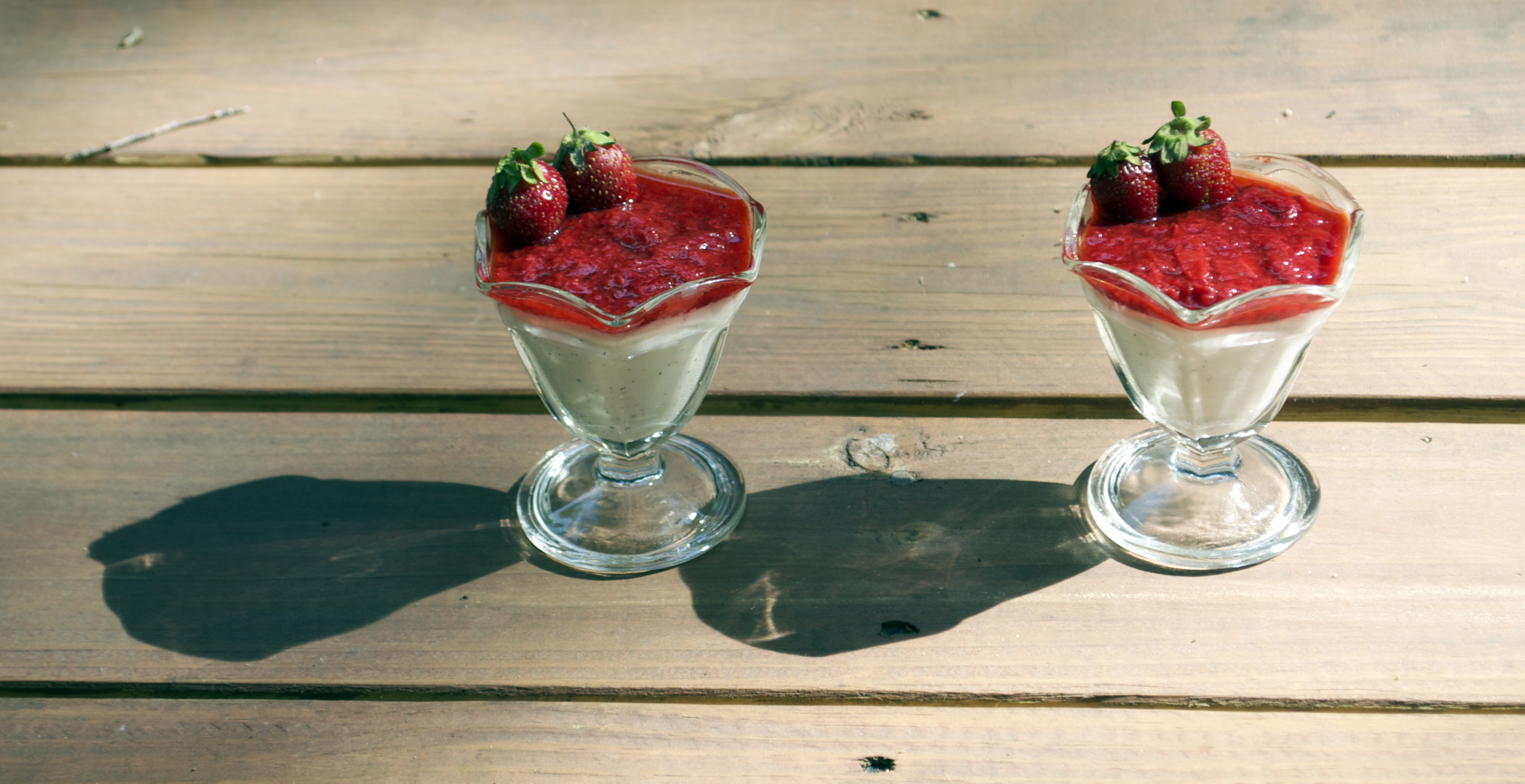 Vanilla Bean Panna Cotta with Strawberry Sauce