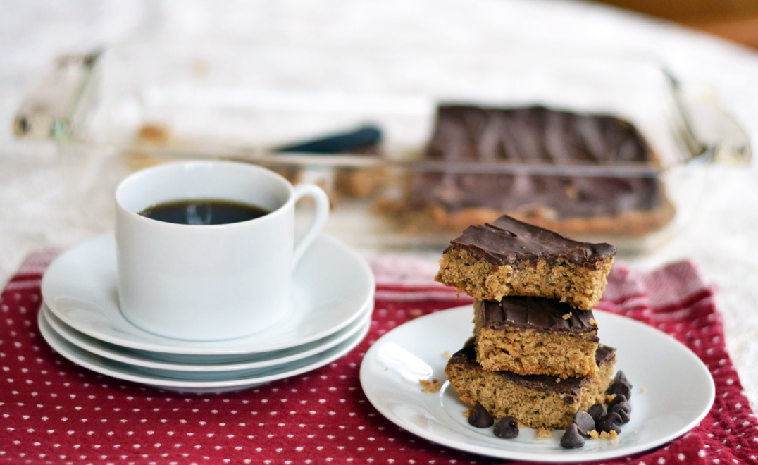 Full of oats. And peanut butter. And topped off with a hard layer of just enough chocolate.